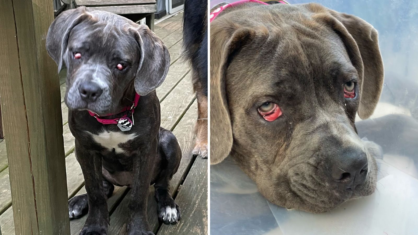 Quando Denali, um mastim mestiço, foi resgatado aos 4 meses por Varble, ela tinha glândulas vermelhas protuberantes no canto de cada olho.