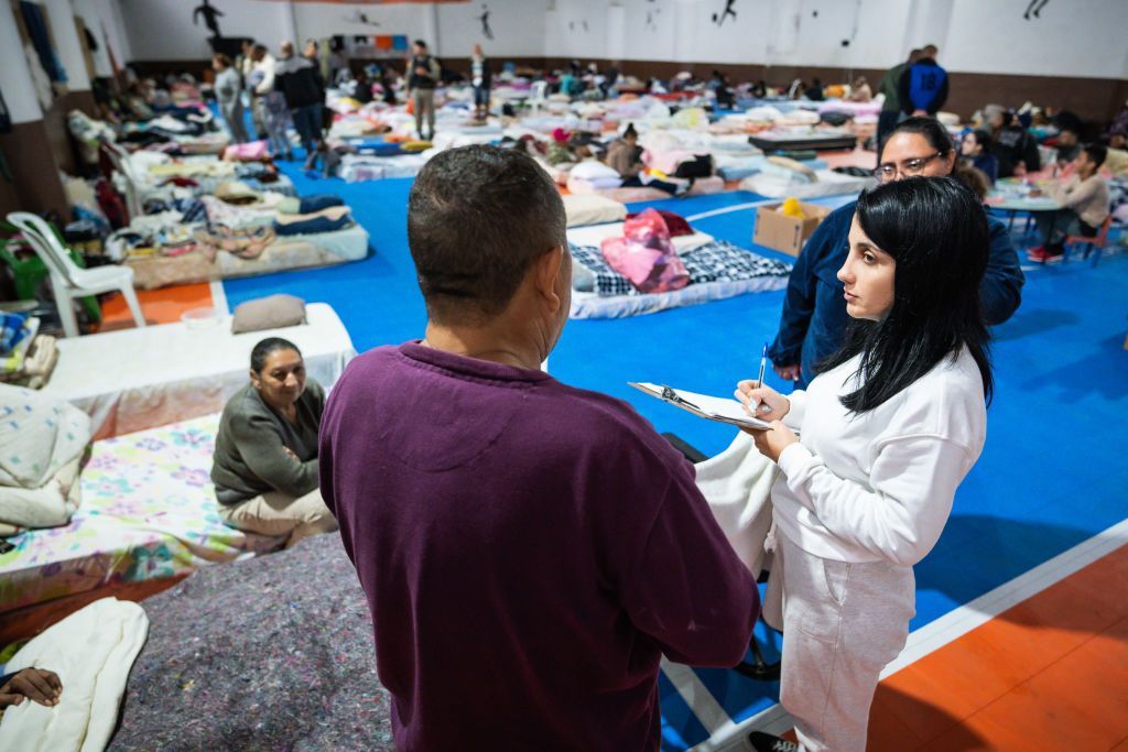A psicóloga clínica Camilla Rodrigues é uma das voluntárias e atua na Escola Mesquita, na zona norte de Porto Alegre, um dos abrigos às vítimas das enchentes na região. À Meio e Saúde, ela conta que, em um primeiro momento, a preocupação dos afetados era em estocar alimentos, roupas e produtos de higiene.